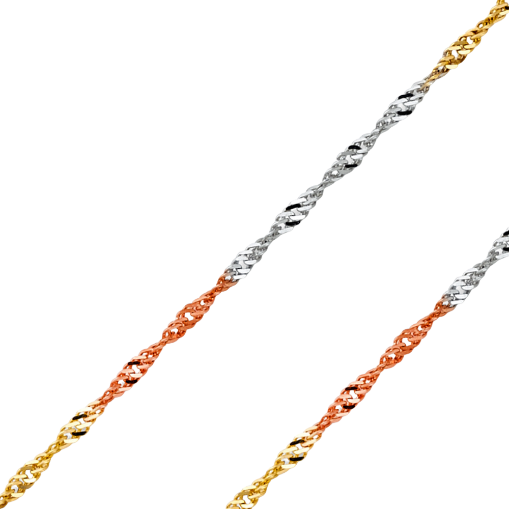 - Real 14K Gold: Discover the elegance of this brand-new Singapore chain crafted from genuine 14k White gold. NOT Plated, NOT Filled, NOT Overlayed; This chain is professionally tested and stamped for 14K gold purity. Enjoy its remarkable durability and hypoallergenic properties.