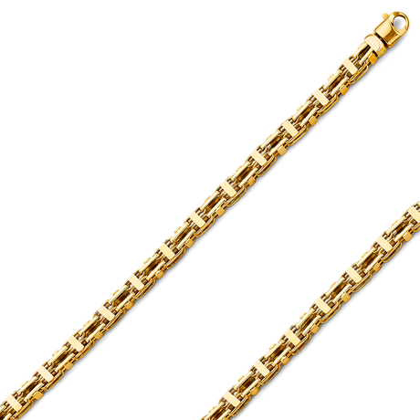 14K REAL Hollow Yellow Gold 6.00mm Fancy Chain and Bracelet