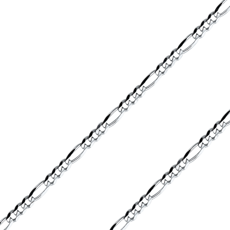 14K REAL White Gold 2.70mm-6.00mm Figaro 3+1 Concave Regular Diamond Cut Chain