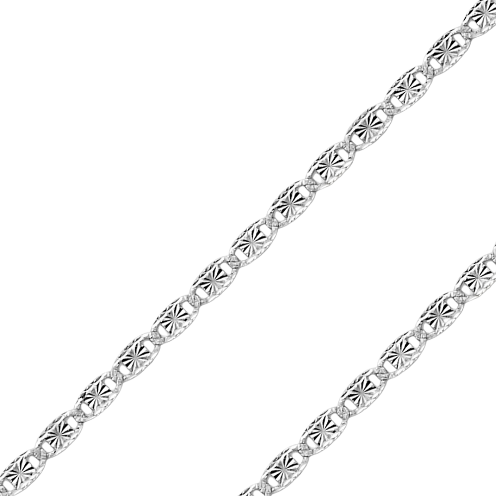 14K REAL Tricolor White Gold 2.1mm-4.20mm Valentino Star & Rail Diamond Cut Chain