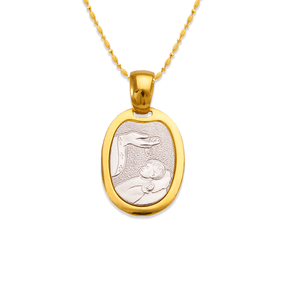 14K Two-Tone Gold High Polished Oval Shape Religious Pendant