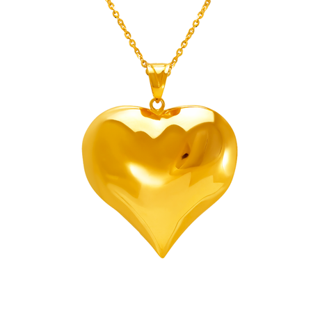 14K Yellow Gold High Polished Hollow Heart Puff Pendant