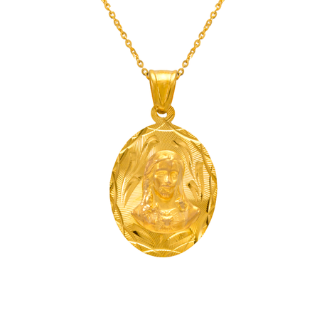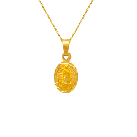 14K Yellow Gold Diamond Cut Oval Guadalupe Scapular Pendant