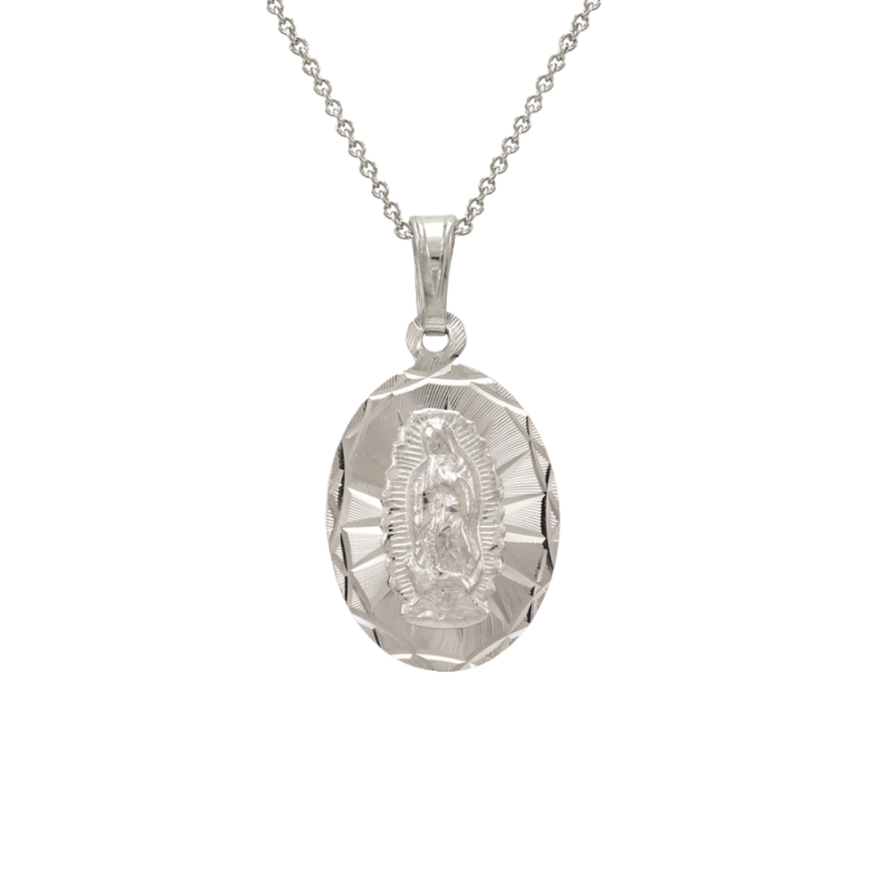 14K Yellow Gold Diamond Cut Oval Guadalupe Scapular Pendant