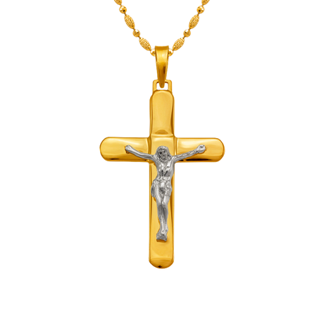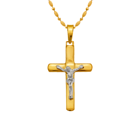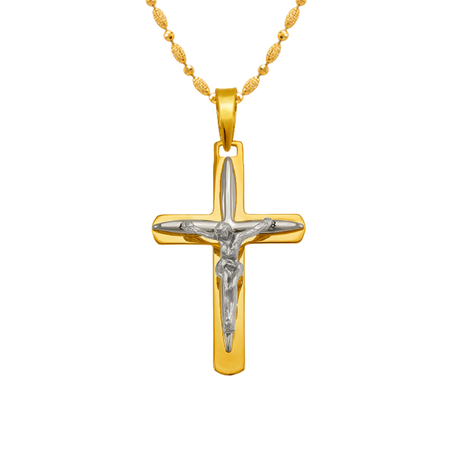14K Two-Tone Gold High Polished Crucifix Cross Religious Pendant