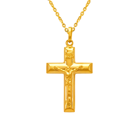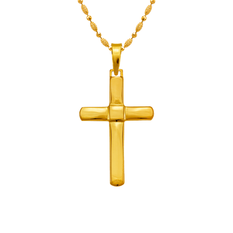 Pingente religioso com cruz de alto polimento em ouro amarelo 14K