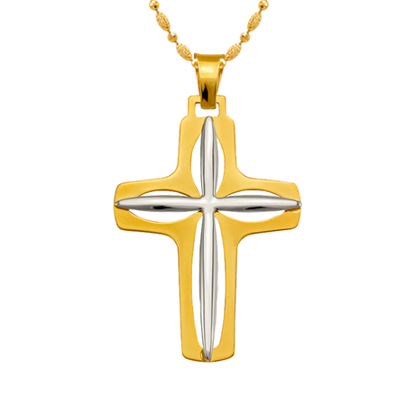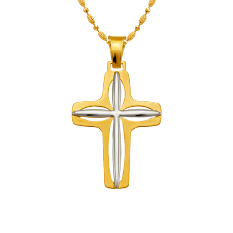 14K Two-Tone Gold High Polished Cross Religious Pendant