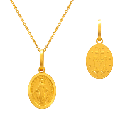 14K Yellow ,White,Tricolor Gold Diamond Cut Oval Guadalupe Scapular Religious Pendant