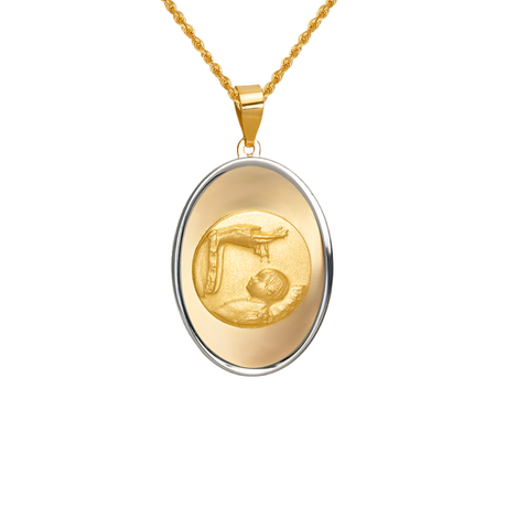 14K Two-Tone Gold High Polished/Satin Finished Baptism Religious Pendant
