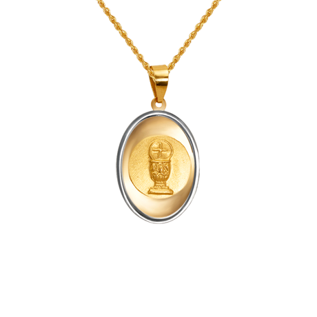 14K Two-Tone Gold High Polished/Satin Finished Communion Religious Pendant