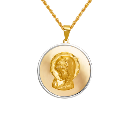 14K Two-Tone Gold High Polished/Satin Finished Virgin Mary Religious Pendant