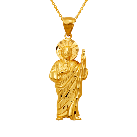 14K Yellow Gold High Polished Diamond Cut San Judas Religious Pendant