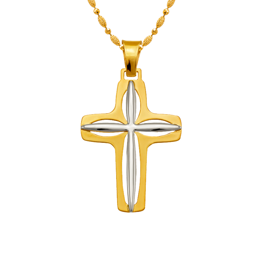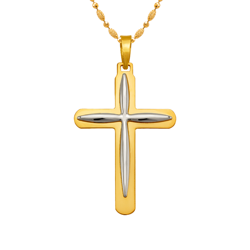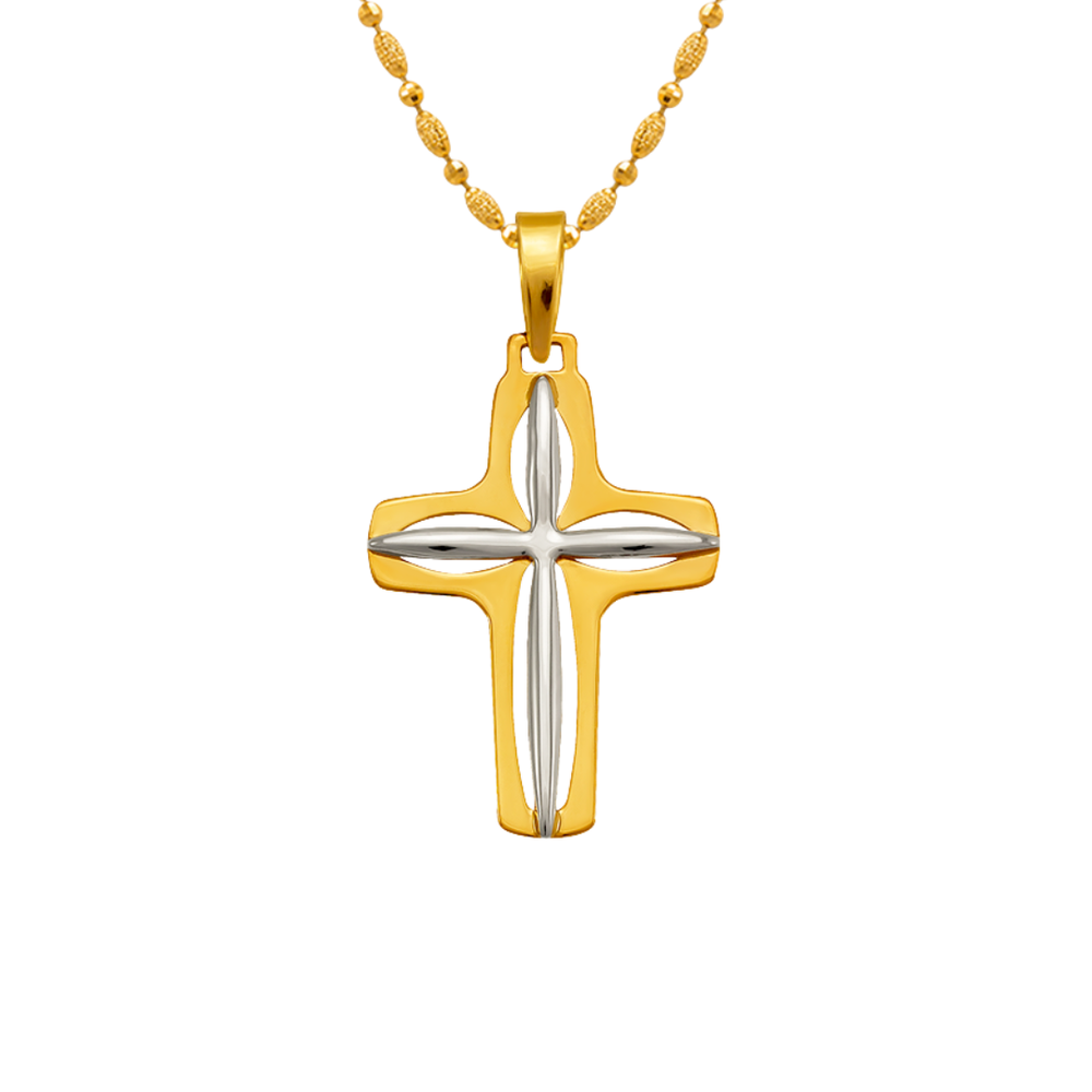 - Real 14K Gold: Discover the elegance of this brand-new Cross Pendant charm gold pendant crafted from genuine 14K Two-Tone gold. NOT Plated, NOT Filled, NOT Overlayed; This Pendant is professionally tested and stamped for 14K gold purity. Enjoy its remarkable durability and hypoallergenic properties.