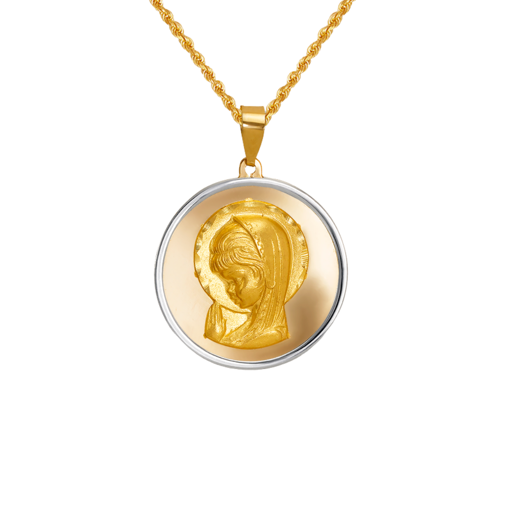 14K Two-Tone Gold High Polished/Satin Finished Virgin Mary Religious Pendant