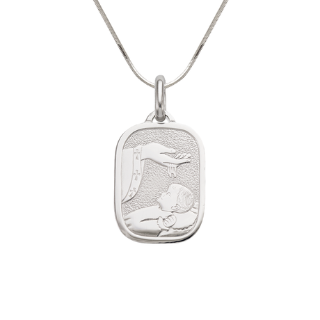 Pingente religioso de cruz de menina de comunhão em ouro amarelo 14K