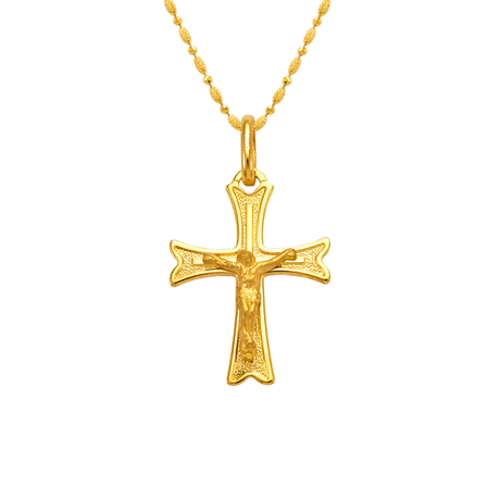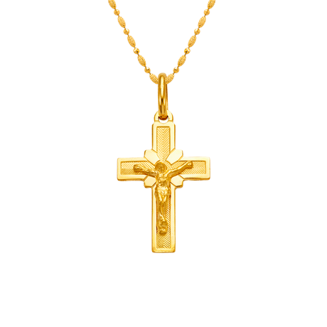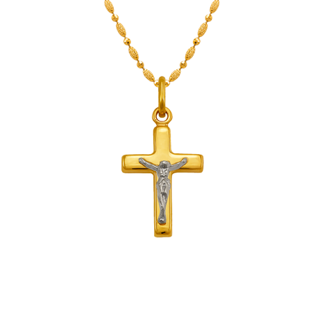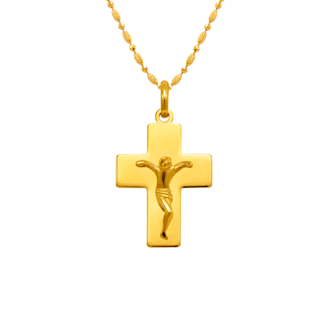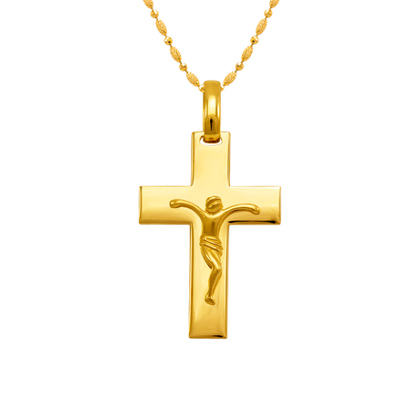 Pingente Religioso Cruz de Jesus em Ouro Amarelo 14K