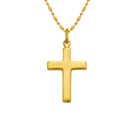Pingente religioso com cruz de alto polimento em ouro amarelo 14K