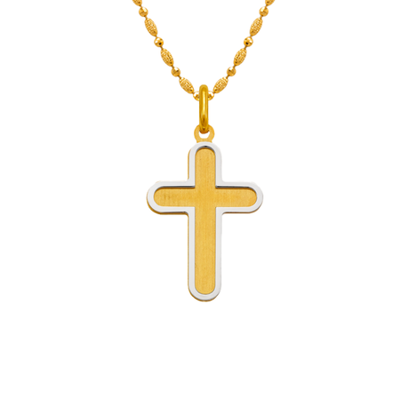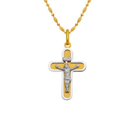 14K Two-Tone Gold High Polished Satin Cross, crucifix Religious Pendant